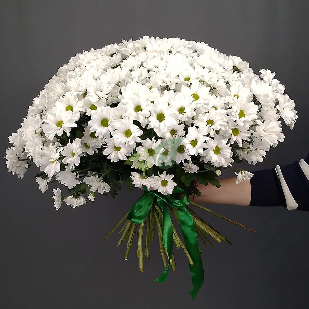 Состав и характеристики букета хризантем "Бакарди белая":
