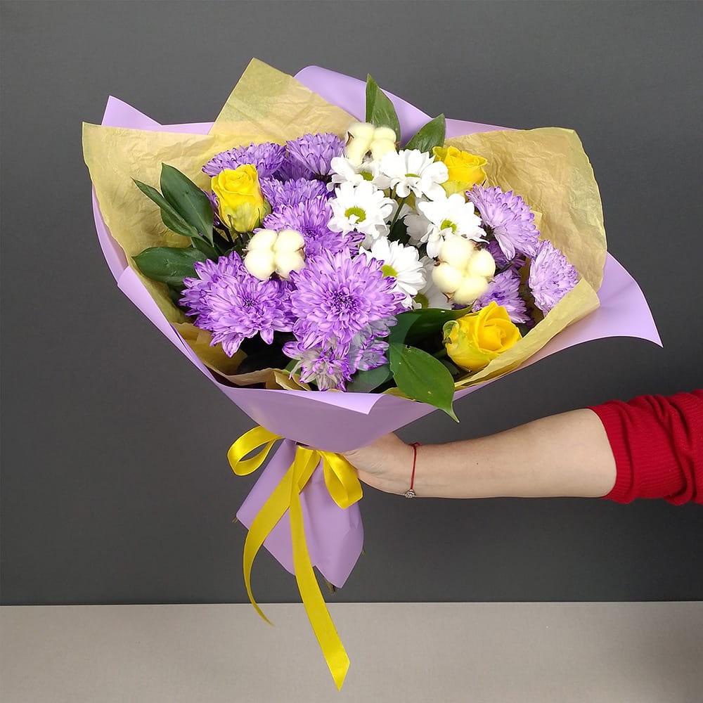 • Хризантема кустовая - 3 штуки, цвет - сиреневый;
